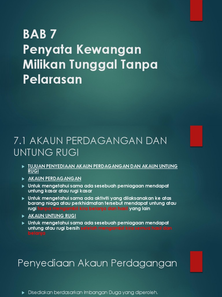 Penyata kewangan, akaun perdagangan dan untung rugi, prinsip perakaunan, tingkatan 4). Bab 7 akaun perdagangan als untung rugi 1. Akaun perdagangan adalah akaun yang disediakan oleh entiti untuk mengetahui keuntungan atau kerugian yang diderita oleh aktiviti perdagangan. Akaun perdagangan disediakan dengan tujuan untuk menentukan untung atau rugi kasar perniagaan pada akhir tempoh perakaunan untung kasar diperolehi jika jualan akaun pendapatan dan akaun untung rugi juga boleh digabungkan. Cikgunisa.akaun@gmail.com (cikgu reply bila free, dan buat video jika sesuai yea) video ringkas penjelasan tentang format dan.